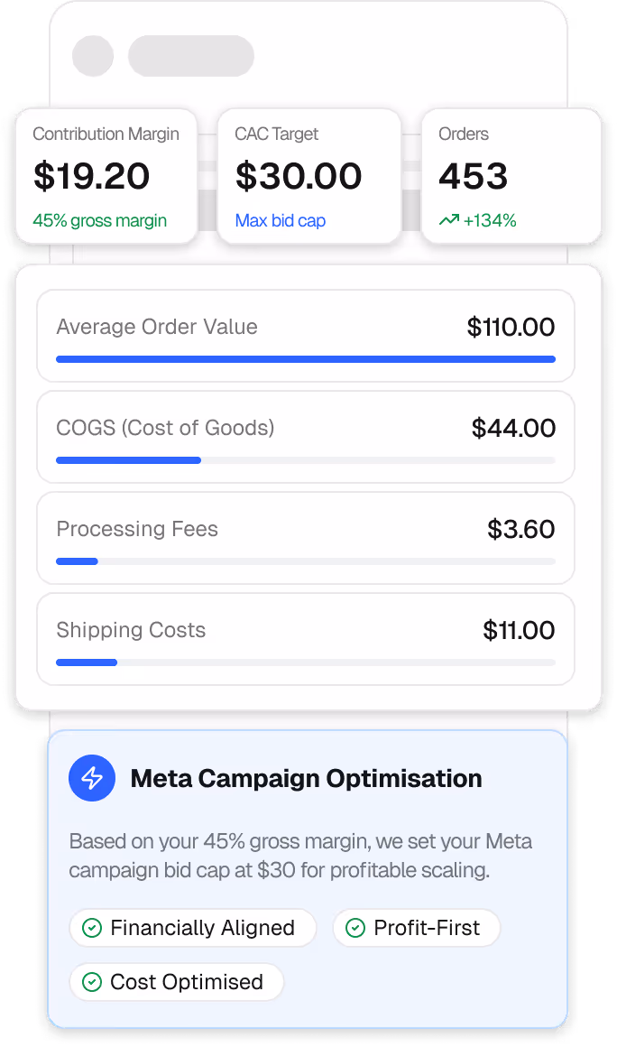 After a year of struggling to get their cost per purchase low enough to make sense of continued advertising on Meta, this US T-Shirt brand enlisted our help with the basic plan. Following a deep dive into their cost per purchase and unit economics, we built an optimised cost control campaign and significantly reduced their cost per purchase. Their cost per purchase reduced by -81% in 1 month by introducing cost controls and achieved a 3.27 ROAS on the spend.